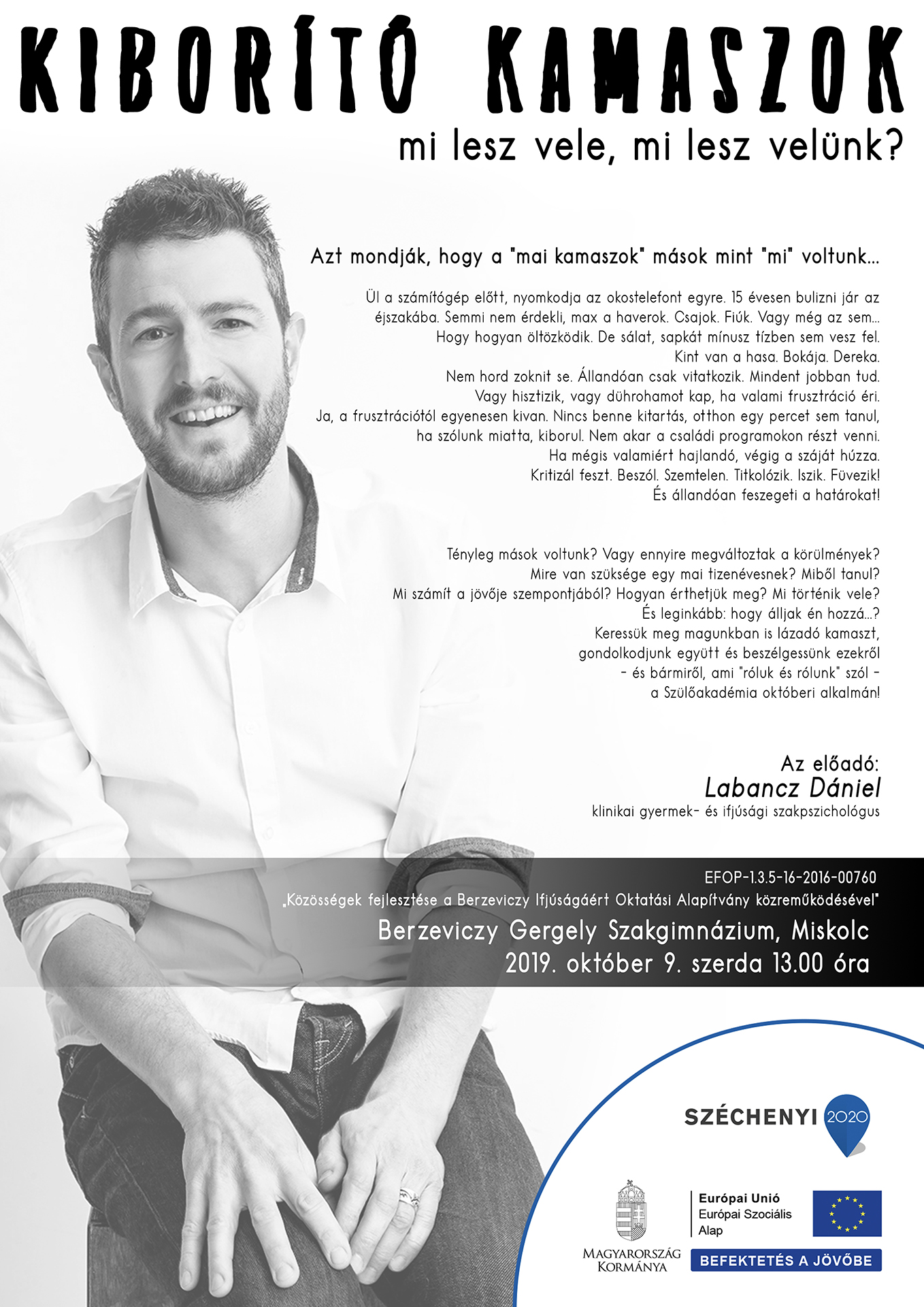 Labancz Dániel klinikai szakpszichológus előadása a Berzeviczy Szakképző Iskolában. 2019.10.09. szerda.